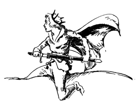 "Oh, all this silly standing round and being bowed at, this 'Hail! Hail! and Way for His Majesty!' stuff. Galloping Gollopers, Uncle, I'd like to step out by myself occasionally without twenty footmen springing to open doors and fifty pages tooting on their blasted trumpets. Why, I cannot even cross the courtyard, that a dozen guardsmen do not fall in behind me!" Flouncing over to the window, Randy stared out over the royal terrace. "Even the goats on the mountain have more fun than I do," he observed bitterly. "They can run, jump, climb and even butt one another, while I—" Randy let his arms fall heavily at his sides. "I have not even anyone to fight with. If just ONCE somebody would punch me in the nose instead of bowing." Randy clenched and unclenched his fists.