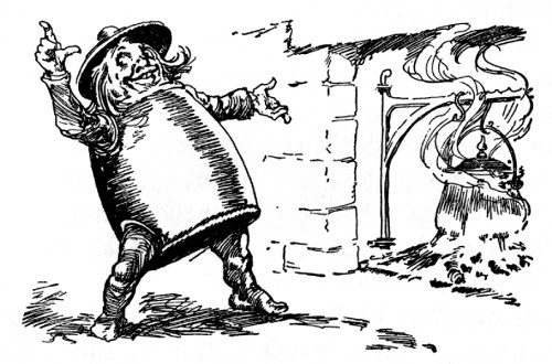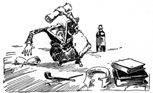 "Open in the name of the LAW!" boomed a tremendous voice. "Thump! Thump! Kerbang! OPEN in the name of a Prince of the Realm! Open this door, you unmannerly Scuppernong!"