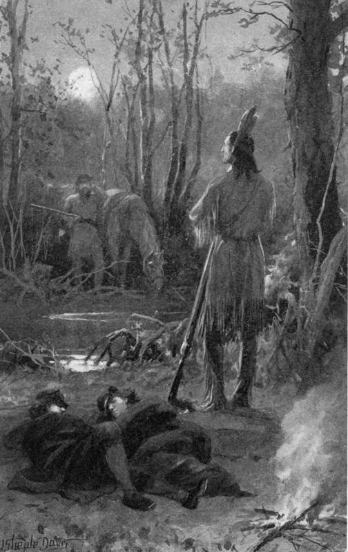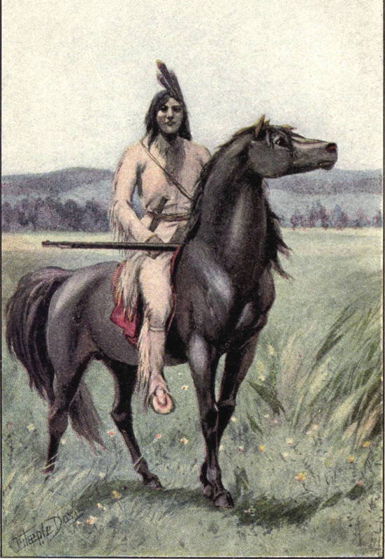 Deerfoot was dressed as he has been before described, but he carried a long, heavy blanket that was strapped to the back of his horse and served in lieu of a saddle. The powder horn and bullet pouch suspended from his neck were as full as they could carry. He looked so graceful on his animal that many expressions of admiration were heard from the people of Woodvale who had gathered to see the start. Deerfoot did not seem to hear any of the compliments, though some were addressed directly to him. He was never pleased with anything of that nature.