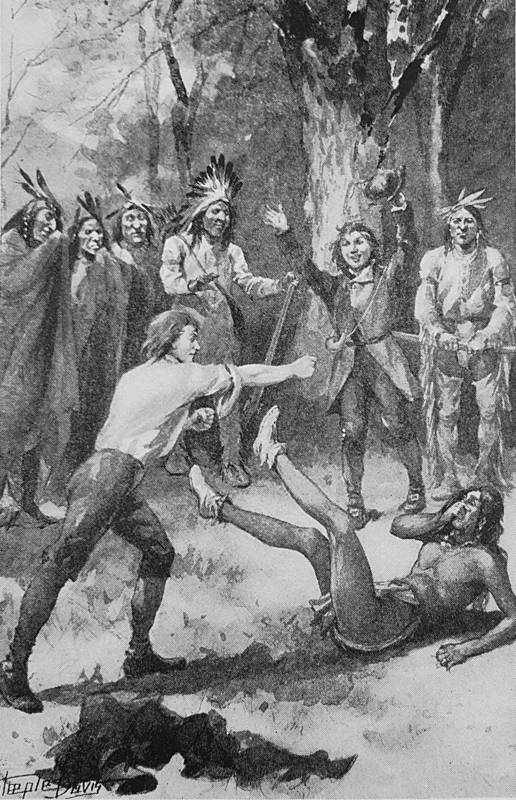 The start was made early on Monday morning, when the sun was shining bright and the opening spring stirred every heart into life and filled it with thankfulness to the Giver of All Good. Men, women and children had gathered in the clearing to the north of the settlement to see the party start and to wish them good speed on their journey. Deerfoot and Mul-tal-la had ridden in from the Shawanoe’s home the day before, so that the start might be made from the settlement.