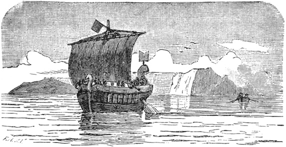 “Too Happy” is founded upon an ancient idea: the prayer for a sign and the acceptance of an omen. Piracy, which plays a prominent part in the narrative, was practised at an early period in the Ægean Sea and afterwards attained such dangerous extent that large and magnificent fleets of pirate cruisers finally threatened Rome herself with intercepting the importations of grain from Pontus. It might perhaps be considered too romantic for a disguised corsair to examine the ship lying in port before plundering her in the open sea. Quite different things, however, are reported. Thevii Phoenician pirates had secret agents who discovered where a ship with a rich cargo lay and promised the helmsman “ten-fold freight money,” if he would anchor in some secluded place, behind a promontory, etc., where the vessel could be overpowered. (Philostratus, vita Apoll. Tyan. III. 24). The conclusion of the story (the ladder hung outside of the ship so that it touches the water) is taken from Plutarch (Pompeius, 24).