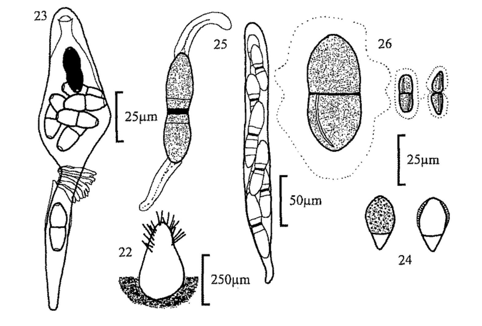 Cain, R. F. (1962). Studies of coprophilous Ascomycetes. VIII. New species of Podospora. Canadian Journal of Botany 40, 447-490.