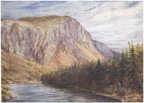 Although there are no very lofty mountains in the island, there are numerous ranges of high hills, the Long Range extending for quite 200 miles in a north-easterly direction from Cape Ray. In the winter the hills present a beautiful appearance, with their innumerable white heads peering above the clumps of spruce and fir trees, the charm of the bright blue being greatly enhanced by the contrast. But they are most beautiful in autumn, when the undergrowth begins to change its colour, and the leaves of the wild berries put on their glamorous robes of scarlet.
