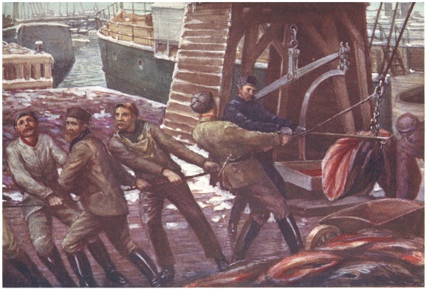 The fishermen not only have to battle with the storms of the sea: they have disappointments too. Sometimes great pans of ice are tightly wedged against the shore, and they have to wait week after week for a wind off the land to drive the heavy ice-blocks out to sea. When the favourable wind arrives and the ice is blown away from the land, they hopefully throw out their lines, only to draw them in again and again with no reward for their labours. The fish have not yet struck in. At last the “schools” are coming to the fishing-grounds, and the hope of the fisherman is revived, only to be dashed again on the following day; for the wind has changed and the ice is once more driven to the land, thus making fishing impossible.