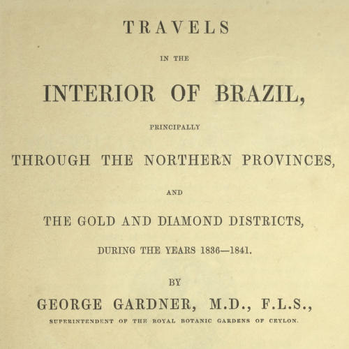The manuscript of Mr. Gardner’s ‘Travels in Brazil’ having been transmitted from Ceylon, and printed during his official residence in that island, the Publishers feel desirous of expressing the great obligation they are under to John Miers, Esq., in the absence of the Author, for his valuable assistance in correcting the technical, botanical, and Brazilian proper names, whilst passing through the press; they also desire to record their sense of the kind services rendered by Robert Heward, Esq., co-operating with Mr. Miers in reading the proofs.
