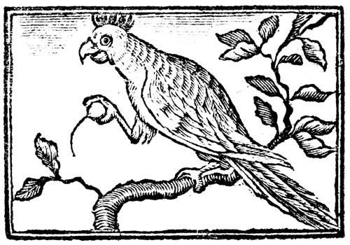 The Parrot is a chattering bird, he talks a great deal, yet knows not what he says; and is therefore not unlike some silly boys, who prate without thinking, and learn their lesson without looking at their book.