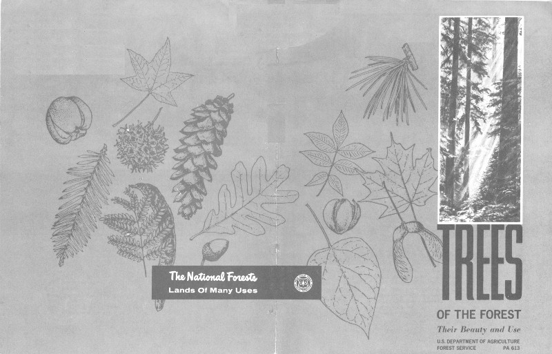 The Multiple Use Tree, based on an ancient symbol for wood and used as an element of design in this booklet, is the central figure of the symbol for the National Forests.