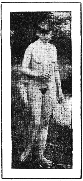 I returned to my chair to think, and soon found the solution. Next day I again crouched before the girl’s legs, choking with emotion. I put my pencil near her toes, and reached round between her legs with my left hand as if to get it, taking care to touch her calf. She shrieked, and drew back her legs, holding my hand tight between them, and cried: “What are you doing there!”