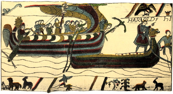 In the fifth division Harold and his suite embark, and it should be noted how large a company the Convention of the Tapestry supposes.
