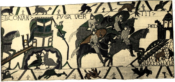 Wace has but a few vague lines just telling us that there was such a thing as a fight with Brittany at this moment. If I am not mistaken, William of Poitiers is the only chronicler who gives us anything like an account, and even so his account is absurdly short and undetailed, though it tallies, both as to the places mentioned and as to the episodes with the Tapestry. The Breton Chronicle, I believe, says nothing about it.