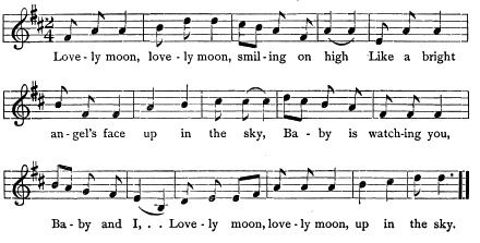 "Good night," said he; and he lay still on his bed, and watched the moon while his mother sang:—