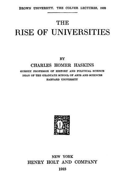 The Rise of Universities, by Charles H. Haskins, Ph.D., LL.D., Litt.D., Gurney Professor of History and Political Science, Dean of the Graduate School of Arts and Sciences, in Harvard University.