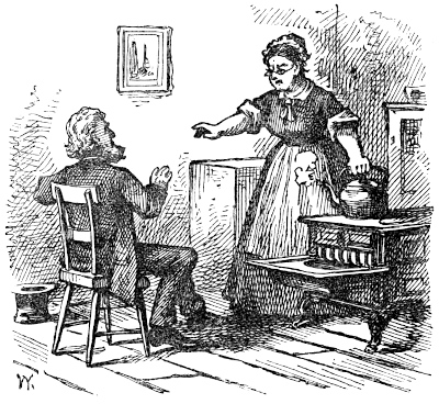 “Wall, wall, holler away, for all I care.” He had strong reasons for not wantin’ me to speak a word about certain things, and his tone was very snappish, snappisher than it had been for over seven weeks. But such trials do great spirits no harm; no, it only lifts ’em up above their own earthly peace and happiness, and sets ’emmore firmly and stiddily on their loftier spears.