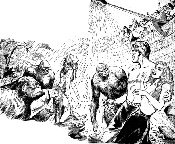 An exotic forest blossomed there. Trees, ferns, brilliant flowers, soft green sward, a myriad of birds. And through this mock-primitive playground wandered the men and women who were devotees of Shanga.