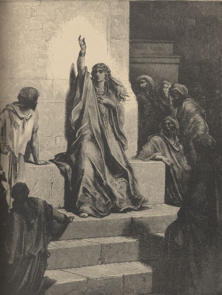 And Jephthah came to Mizpeh unto his house, and, behold, his daughter came out to meet him with timbrels and with dances: and she was his only child; beside her he had neither son nor daughter. Judges xi, 29-34.