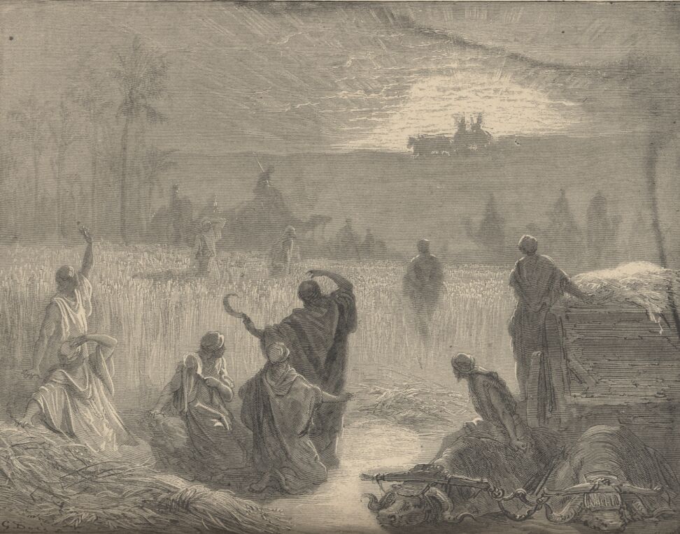 So she gleaned in the field until even, and beat out that she had gleaned: and it was about an ephah of barley.—Ruth ii. 1-17,