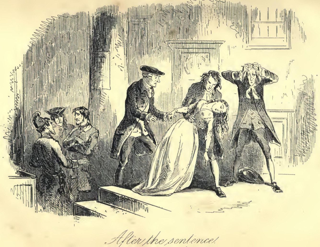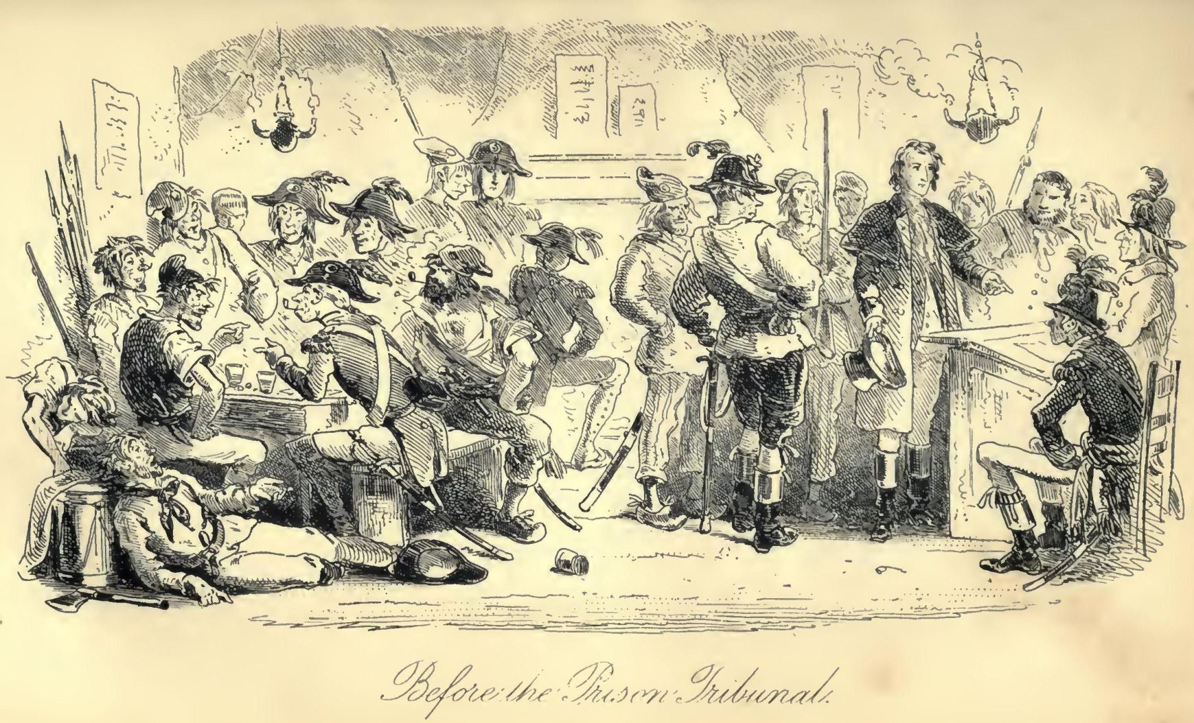 In England, there was scarcely an amount of order and protection to justify much national boasting. Daring burglaries by armed men, and highway robberies, took place in the capital itself every night; families were publicly cautioned not to go out of town without removing their furniture to upholsterers' warehouses for security; the highwayman in the dark was a City tradesman in the light, and, being recognised and challenged by his fellow-tradesman whom he stopped in his character of “the Captain,” gallantly shot him through the head and rode away; the mail was waylaid by seven robbers, and the guard shot three dead, and then got shot dead himself by the other four, “in consequence of the failure of his ammunition:” after which the mail was robbed in peace; that magnificent potentate, the Lord Mayor of London, was made to stand and deliver on Turnham Green, by one highwayman, who despoiled the illustrious creature in sight of all his retinue; prisoners in London gaols fought battles with their turnkeys, and the majesty of the law fired blunderbusses in among them, loaded with rounds of shot and ball; thieves snipped off diamond crosses from the necks of noble lords at Court drawing-rooms; musketeers went into St. Giles's, to search for contraband goods, and the mob fired on the musketeers, and the musketeers fired on the mob, and nobody thought any of these occurrences much out of the common way. In the midst of them, the hangman, ever busy and ever worse than useless, was in constant requisition; now, stringing up long rows of miscellaneous criminals; now, hanging a housebreaker on Saturday who had been taken on Tuesday; now, burning people in the hand at Newgate by the dozen, and now burning pamphlets at the door of Westminster Hall; to-day, taking the life of an atrocious murderer, and to-morrow of a wretched pilferer who had robbed a farmer's boy of sixpence.